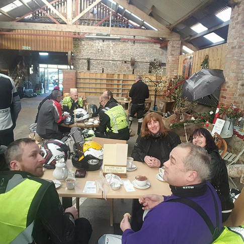 First stop at Beadlam and the relative warmth of Beverley had plummeted as the group rode up into the North Yorkshire Moors. An open cafe area with wind blowing through didn't help!